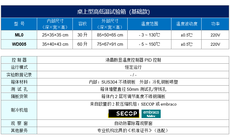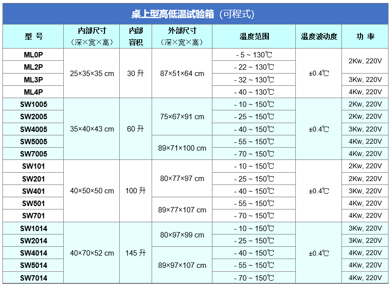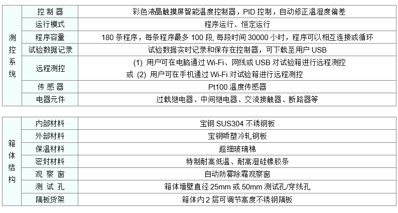 * 如需更大的尺寸或更广泛的温度范围,请浏览:高低温交变试验箱