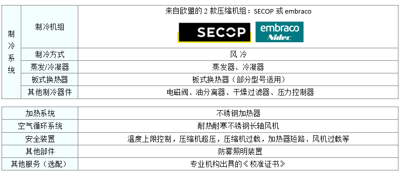 * 如需更大的尺寸或更广泛的温度范围,请浏览:高低温交变试验箱